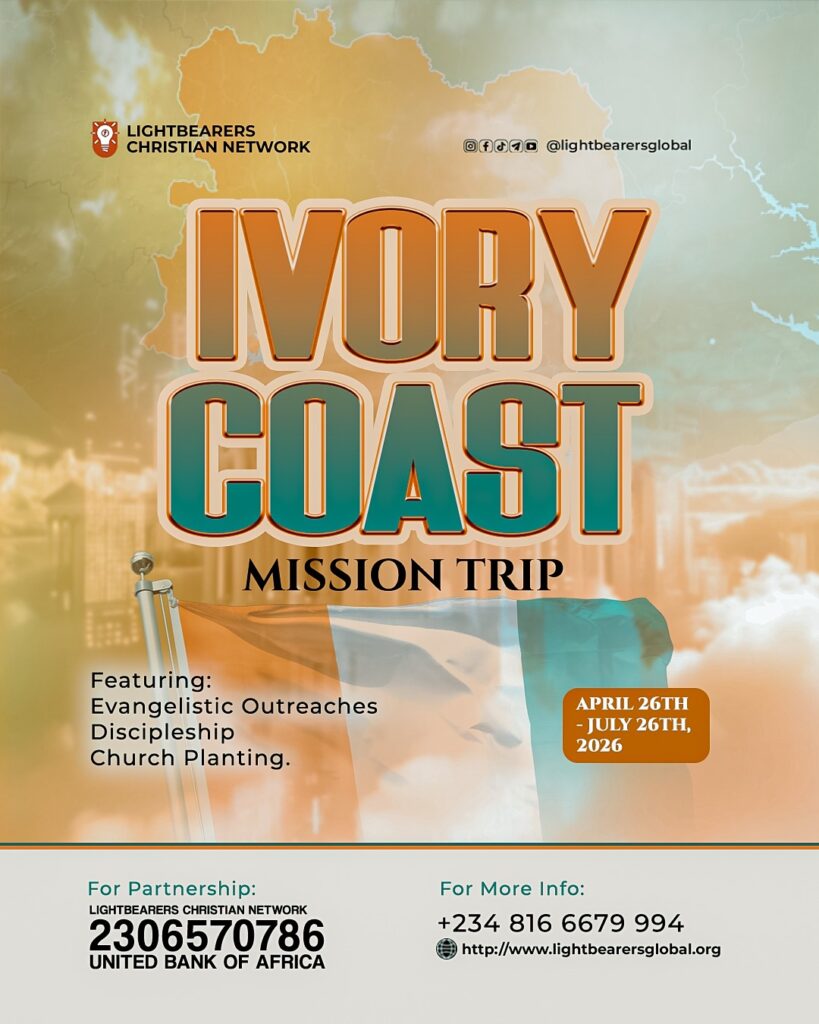 Lightbearers Christian Network is a non-denominational missions-based ministry domiciled in Abeokuta, Nigeria. We engage in rural missions outreaches, rural Church planting, discipleship classes at the ministry centre, Bible and missions training, publication of free teaching tracts, magazines and books, and organizing campmeetings and missions seminars in various towns and cities.